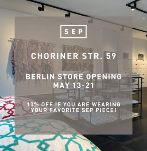 We want to celebrate with you! Wear your favourite SEP pieces to our Choriner Str. 59 store throughout the week and receive an exclusive WELCOME 10% reduction on your purchases (in-store only)!